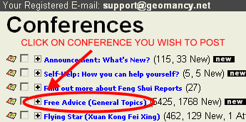Select the conference you wish to post for example Free Advice (General Topics) or other conference like Flying Star (Xuan Kong Fei Xing). Click on it to expand the topics and also to select that conference as the current conference to post into.