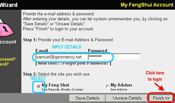 - Login to your account at http://login.geomancy.net