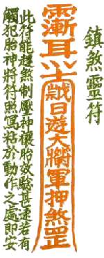 3.5 According to the ancient alamanac, this charm is used to protect a pregnant lady by burning the charm and drinking the charm in a glass of cold water:-