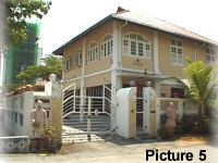 An old refurbished bungalow that was built under Feng Shui concepts. Picture 1 shows the North/South direction of the house. If you look carefully the North, has a shape of one-half of a trigram and the toilet is at this location for both the ground floor and first floor of the house. For information, North belongs to the water element. At the South, you will notice a pointed octagon roof. A pointed roof represents the Fire element. Picture 2 shows another view of the house taken at another angle. Notice that the `Western' part of the house has a flat shaped structure. This represents the `earth' element. Isn't this a perfect example of house applying Feng Shui concepts. No wonder, it still remains today and the government has earmarked the building for conservation and it cannot be demolised!